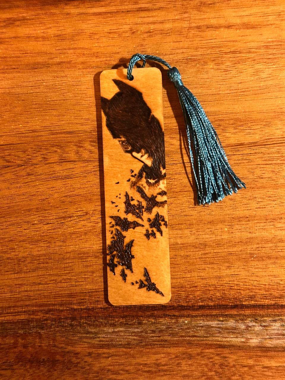 Questo segnalibro unico, pirografato a mano su legno naturale, é un omaggio a Batman.
